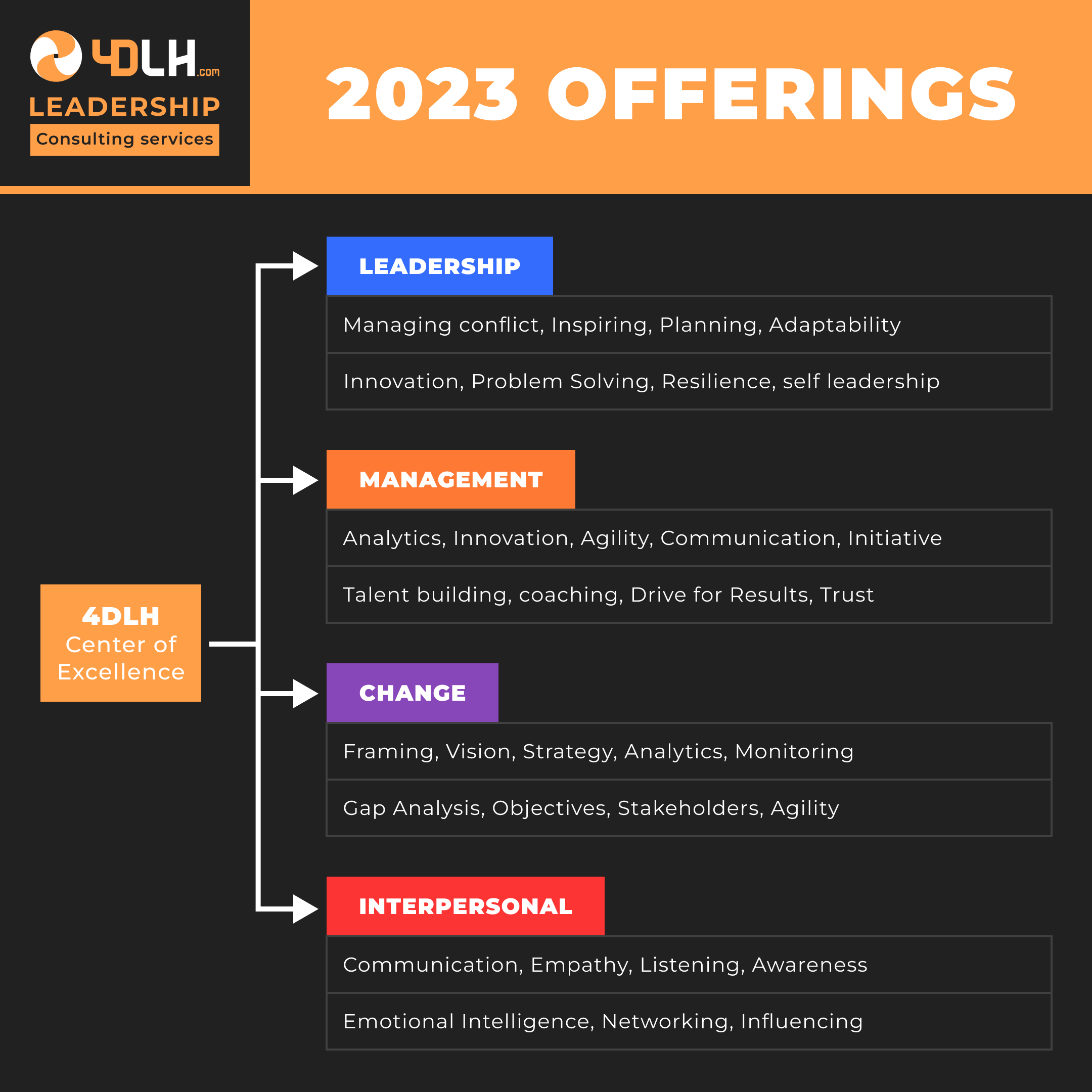 Welcome to 4D Leadership House, where we showcase excellence in leadership and personal development! Our curated selection of specialized training programs provides you with the opportunity to enhance your skills in leadership, change management, and interpersonal relationships. Renowned experts, content directly applicable to the business world, real-world case studies, and a focus on personal development await you. Get ready to shine with us. Don't miss this opportunity.